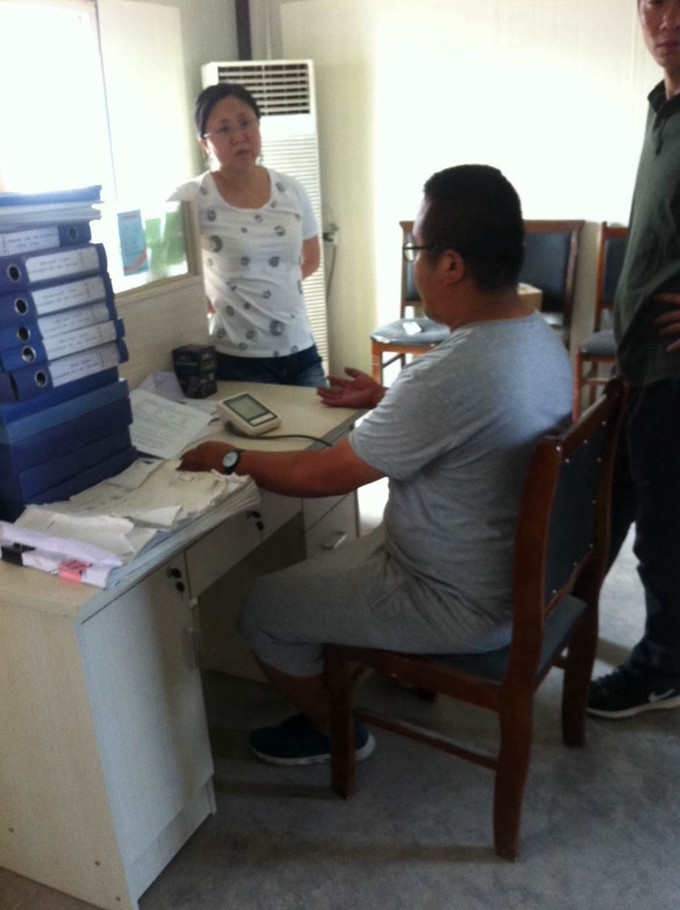 就在這樣一個炎熱的夏日,公司畢大夫與李明俊不顧酷暑一起來到工地,給大家送來了電子血壓儀,畢大夫親自給大家示范,并詳細的詢問工地職工的在職情況,唯恐漏下一個員工,為公路一線職工的身體健康添加了一道安全的防火線。