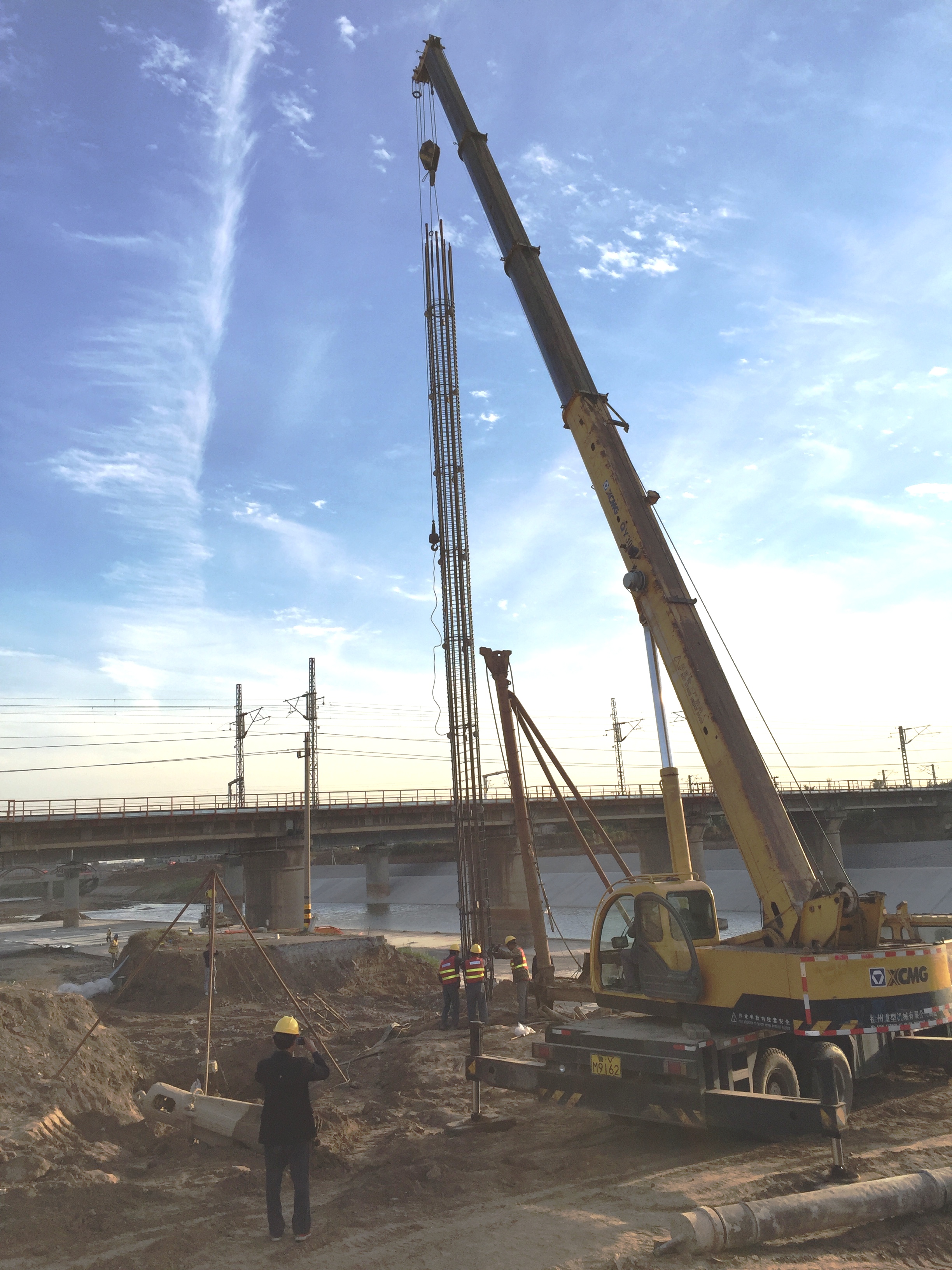 2016年10月8日,第一顆樁基鋼筋籠從鋼筋加工場倒運(yùn)至施工現(xiàn)場。