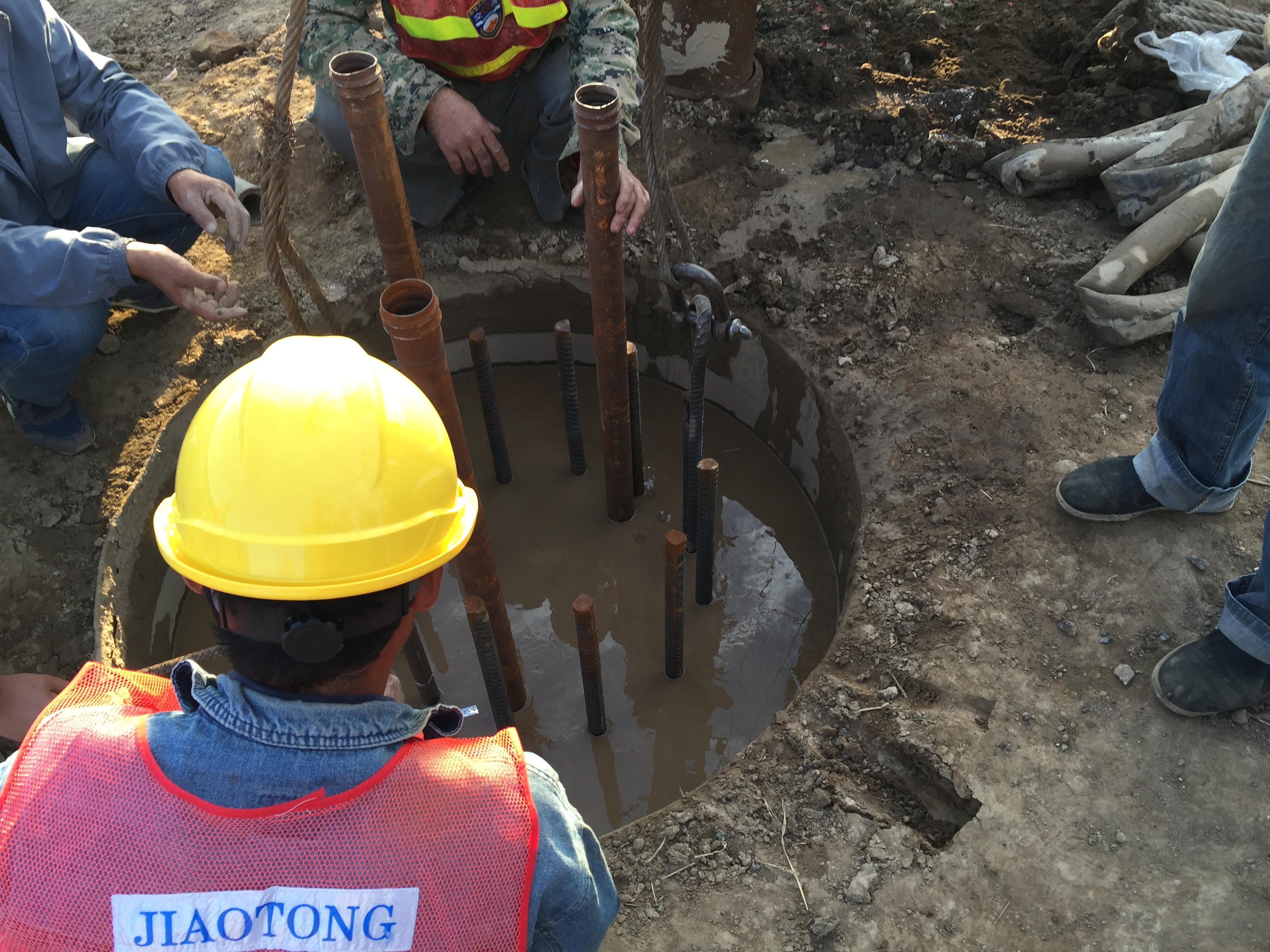 2016年11月24日,利用探孔器檢測樁基成孔質(zhì)量。
