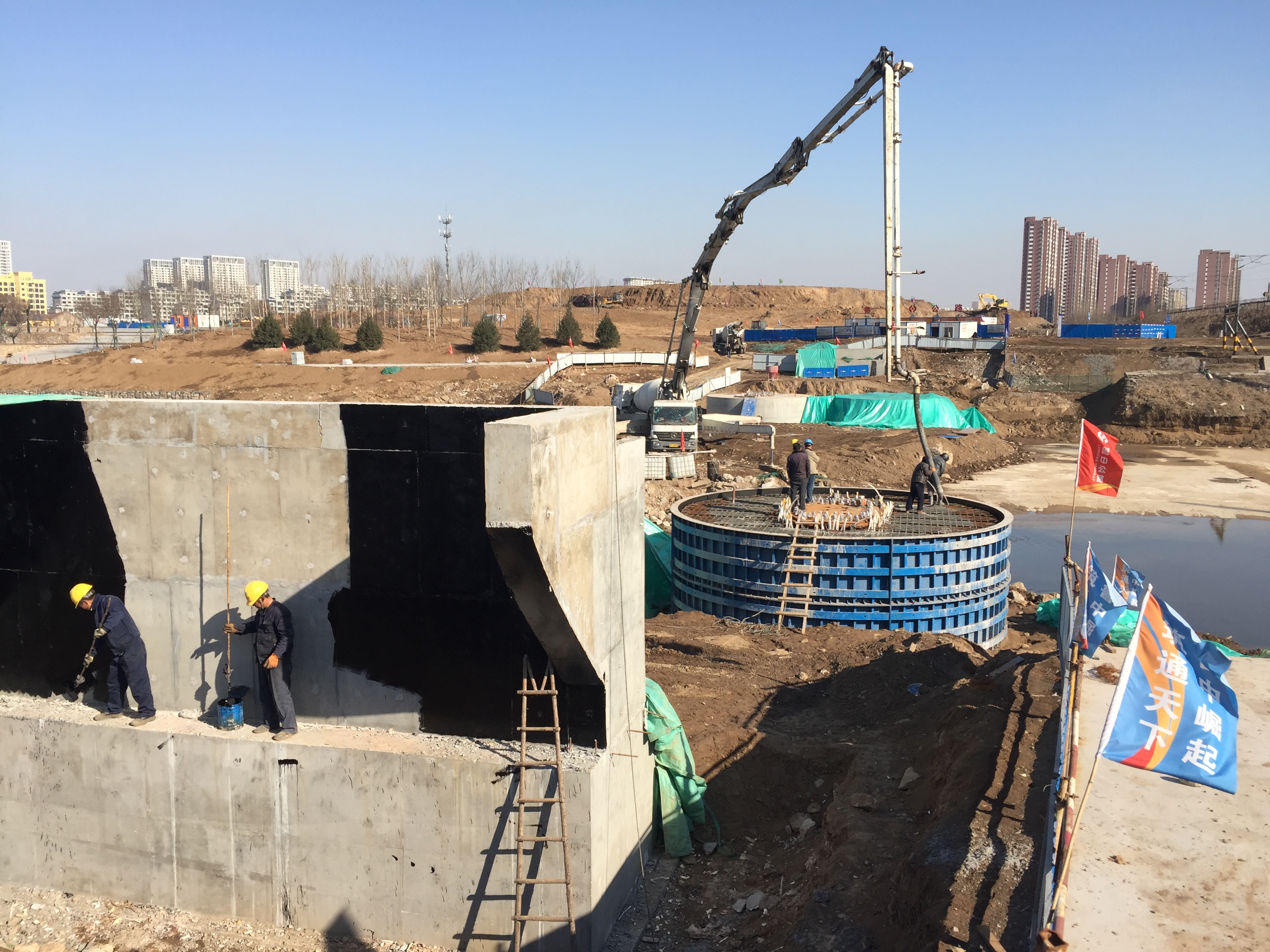 2017年1月14日,久違的藍(lán)天下,我們完成了最后一個圓承臺的澆筑。