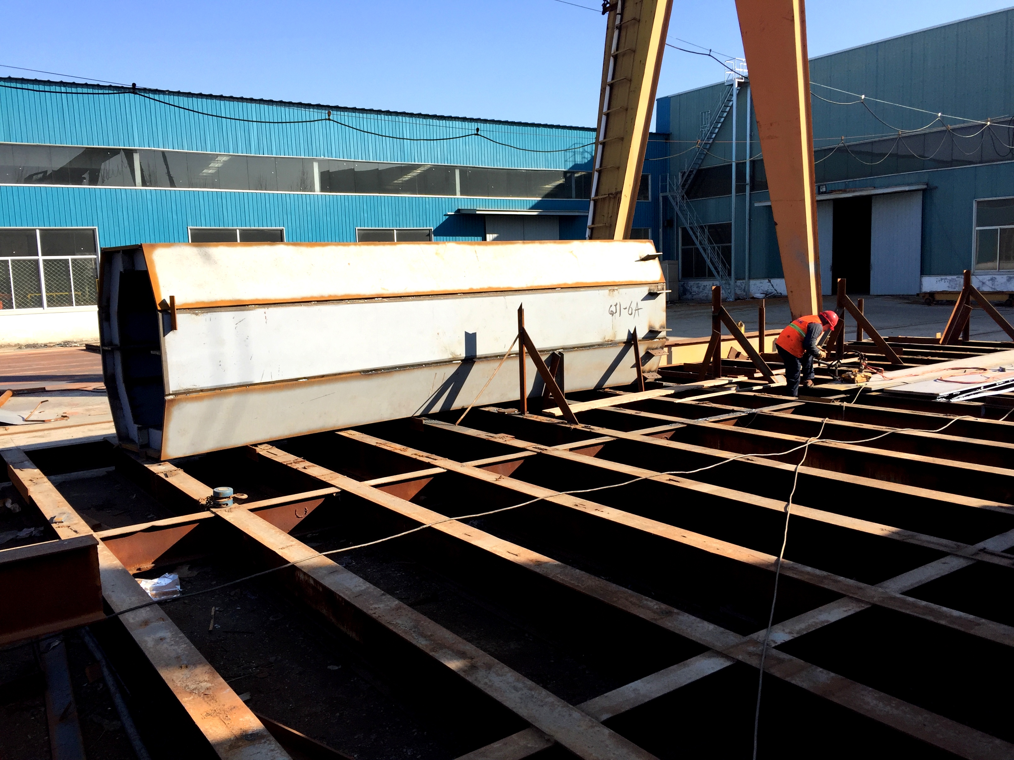 2017年2月9日,鋼主塔加工現(xiàn)場。