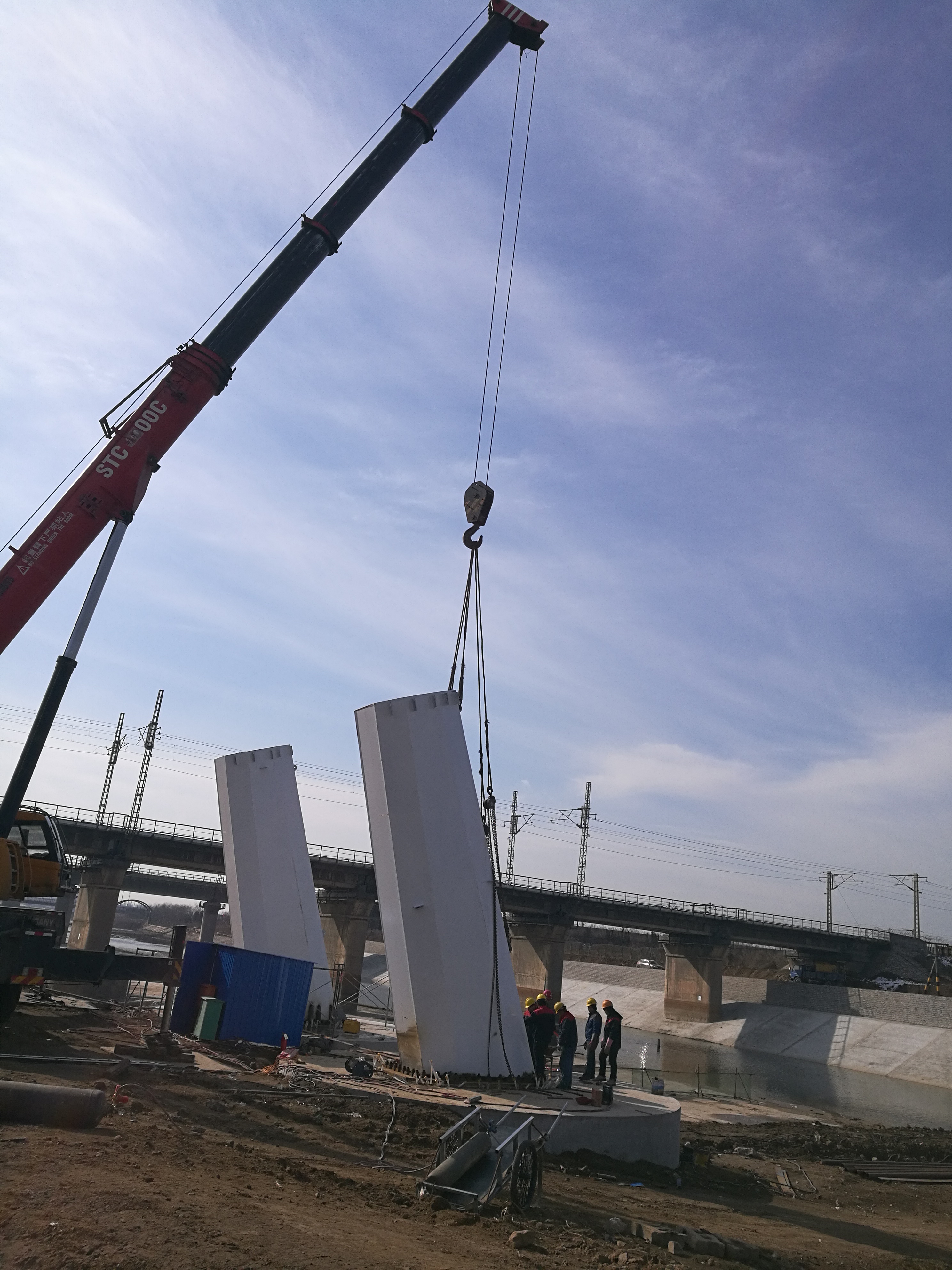 2017年3月14日,鋼主塔安裝現(xiàn)場。