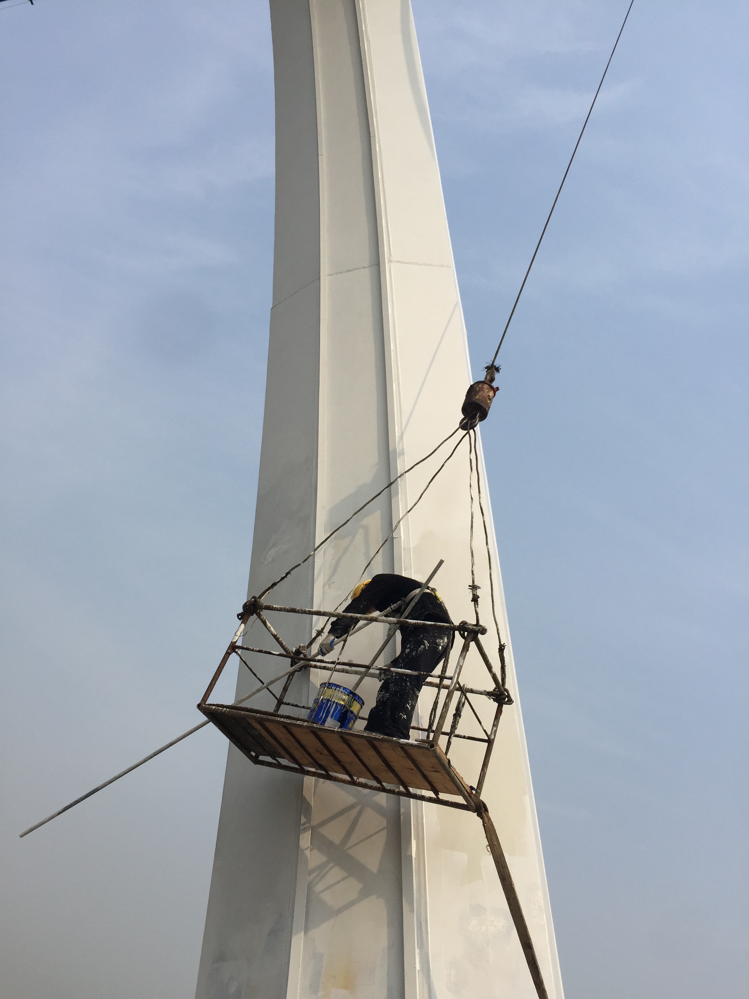 2017年5月1日,懸索橋主塔面漆涂裝。
