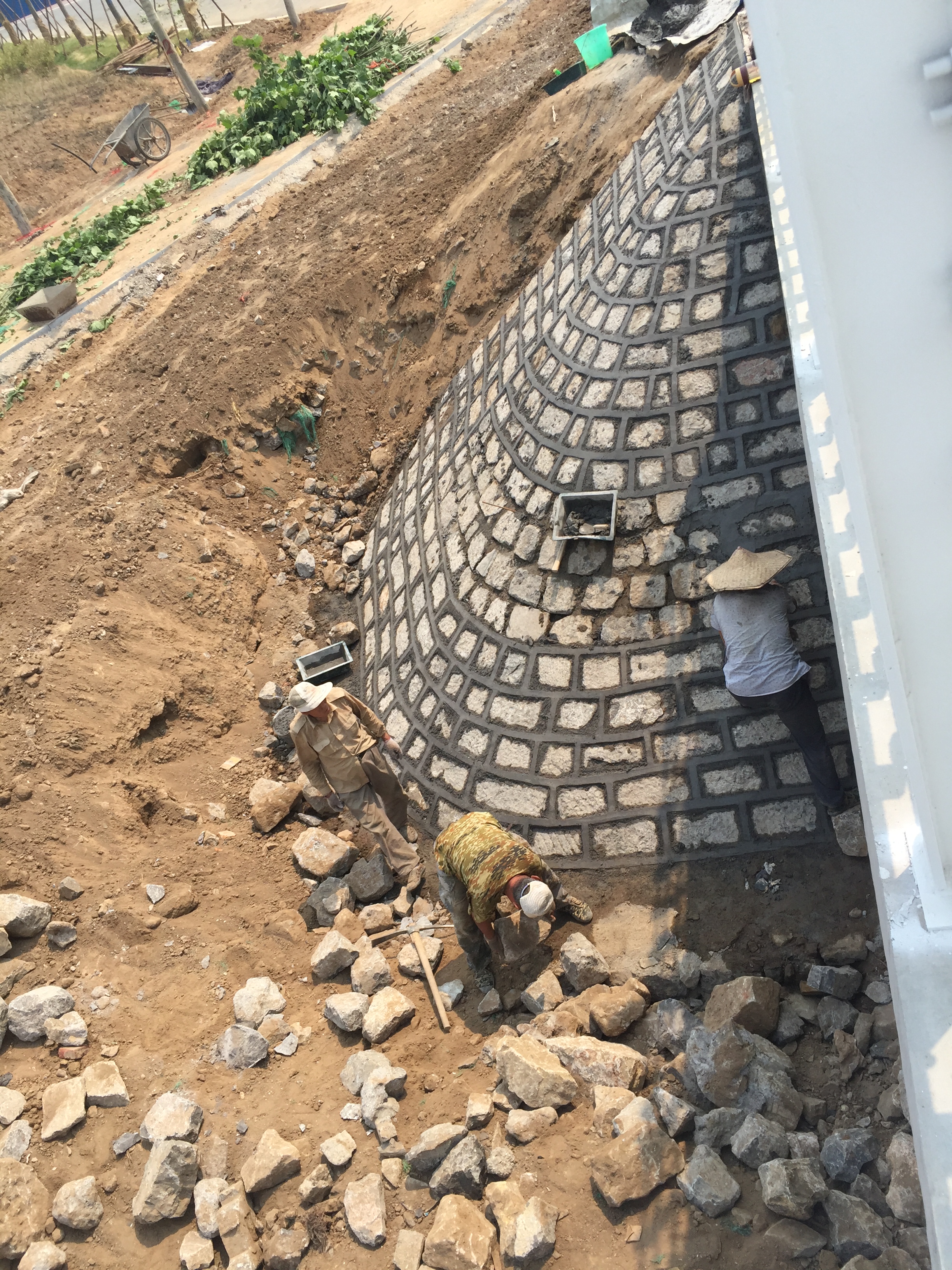 2017年5月18日,橋臺錐護(hù)坡施工。