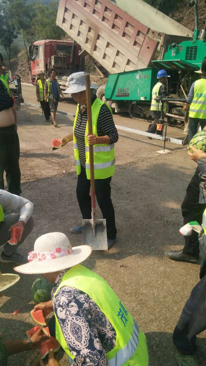 炙熱的太陽(yáng)烘烤著土地,工地上根本沒(méi)有遮陰的地方,全憑頭戴草帽抵擋強(qiáng)烈的陽(yáng)光;灑水車不斷的噴灑著水,很快變?yōu)樗徽舭l(fā);瀝青路面因高溫?cái)備佒丝局蠹业募∧w;機(jī)械作業(yè)噴發(fā)的熱浪加上直曬的太陽(yáng)把大家周圍的溫度瞬間提升很多倍!但是再熱的天氣也阻擋不了公路一線員工的工作熱情,公路建設(shè)者為了趕工期、追進(jìn)度,仍然夜以繼日的戰(zhàn)斗在環(huán)境惡劣的施工一線。
