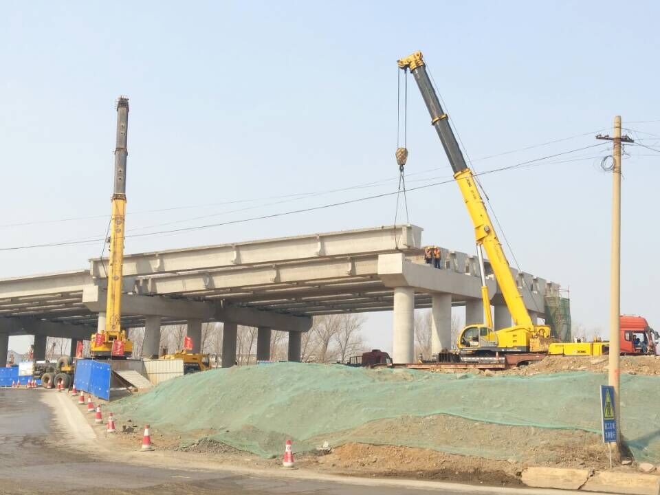 2臺(tái)汽車(chē)吊架設(shè)箱梁