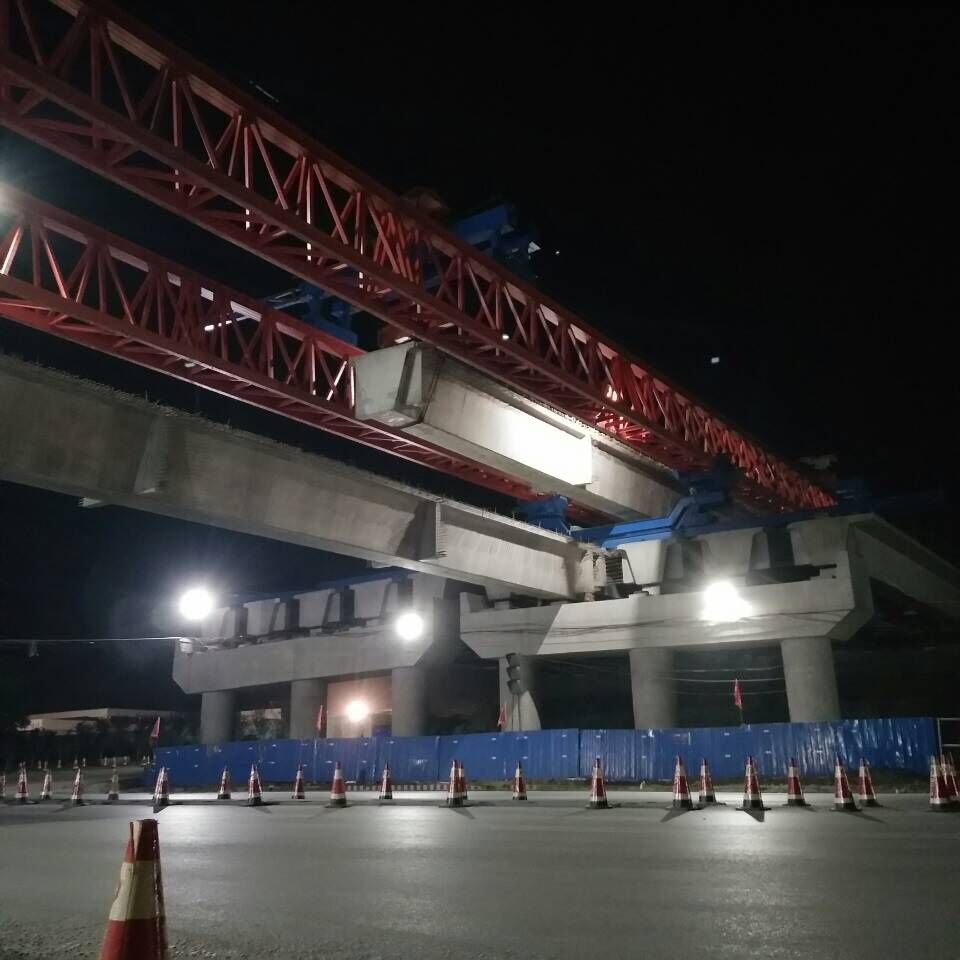 夜間跨張博路箱梁架設(shè)