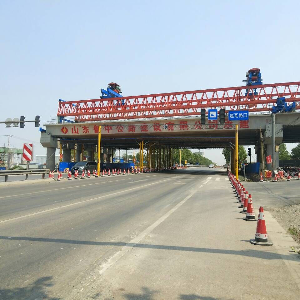 2017年5月23日,第20孔跨S294張博路架梁開(kāi)始。為了這一天的到來(lái),項(xiàng)目部人員可謂是克服了種種困難。不知多少遍的與公路局、交警大隊(duì)、雙楊鎮(zhèn)政府等各上級(jí)部門(mén)協(xié)調(diào)、溝通,方案也不斷的進(jìn)行優(yōu)化。最終確定下來(lái),在趙瓦路口東西兩側(cè)新修兩條輔道,晚0點(diǎn)至凌晨5點(diǎn)對(duì)趙瓦路口進(jìn)行封閉施工,過(guò)往車(chē)輛從兩側(cè)輔道慢速通行。為了保證張博路車(chē)輛通行安全,在架梁前,項(xiàng)目部全體人員進(jìn)行了夜間道路封閉演練,演練按計(jì)劃順利完成。在歷經(jīng)了5個(gè)夜晚后,跨張博路箱梁架設(shè)完畢。