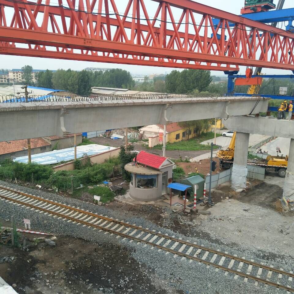 2017年7月5日,第18跨跨張博鐵路箱梁架設(shè)開(kāi)始??玷F路施工我項(xiàng)目部是第一次接觸,再加上鐵路協(xié)調(diào)難度比較大,所以從年后就開(kāi)始為跨鐵路施工做準(zhǔn)備,方案評(píng)審、各鐵路設(shè)備單位安全協(xié)議簽訂、路局施工計(jì)劃下達(dá)、各配合單位的配合通知單簽訂,一套程序走下來(lái)就得2-3個(gè)月,但不怕困難、迎難而上的我們硬是在不懈的努力中啃下了這塊硬骨頭。在經(jīng)歷5個(gè)天窗點(diǎn),第17、18跨箱梁架設(shè)完畢,這也代表著張博路分離立交橋所有箱梁架設(shè)完畢。