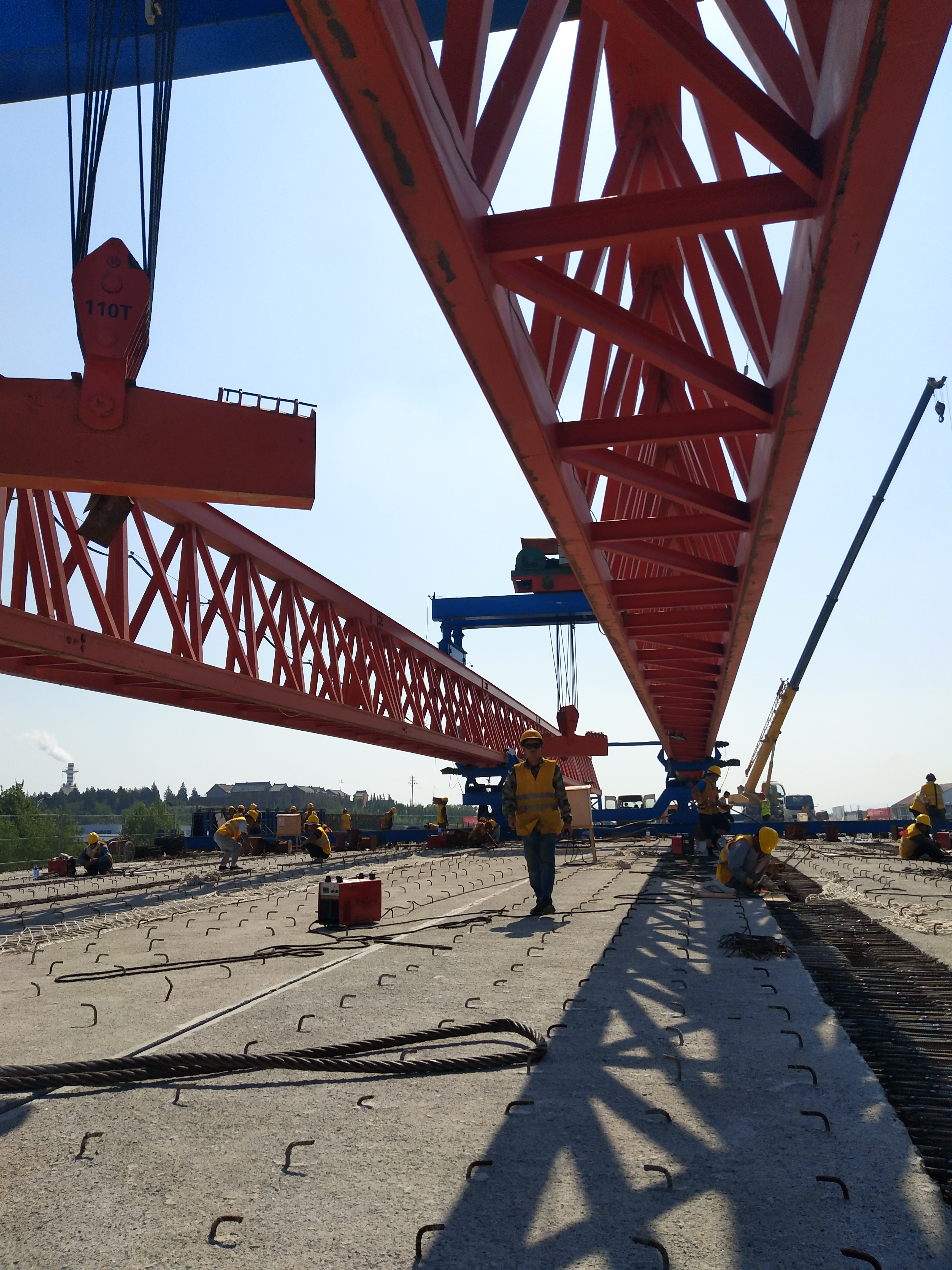 張博路分離立交橋施工的最大難題便是涉鐵施工,鐵路各個部門錯綜復雜,地下地上管線錯綜盤繞,各個部門需要申請配合協(xié)商。面對種種困難我們臨危不懼,從最開始地下管線排查,鐵路道口路燈拆除,鐵路上方高壓線下降等等,各個工作都是相互溝通,相互配合,合理安排,統(tǒng)籌規(guī)劃。發(fā)揚不怕吃苦不懼困難的精神,每天都有進展,重重困難各個擊潰,最終實現(xiàn)張博路分離立交橋全橋梁板吊裝完成。