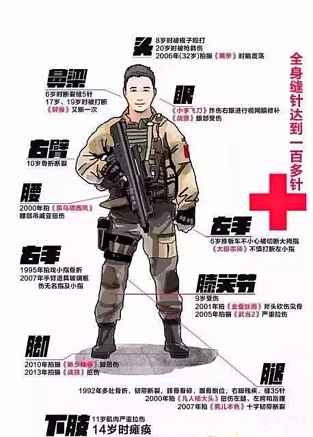現(xiàn)在他開(kāi)始將重心定位在軍旅題材,為此特意到部隊(duì)中訓(xùn)練18個(gè)月潛水、跳傘、射擊格斗、野外生存......甚至為了拍戲表演更加真實(shí)還學(xué)習(xí)坦克駕駛,誓將自己打造成為合格的戰(zhàn)士。在拍攝《戰(zhàn)狼》的一個(gè)跳海鏡頭時(shí),他連跳26次,拍攝中差點(diǎn)窒息。對(duì)于意外受傷,吳京始終認(rèn)為是動(dòng)作演員的基本工作,他從不炫耀,而且每次都特要面兒的說(shuō):“如果你一定要說(shuō),我覺(jué)得,那就是我的底線,要高于你的理想。”
