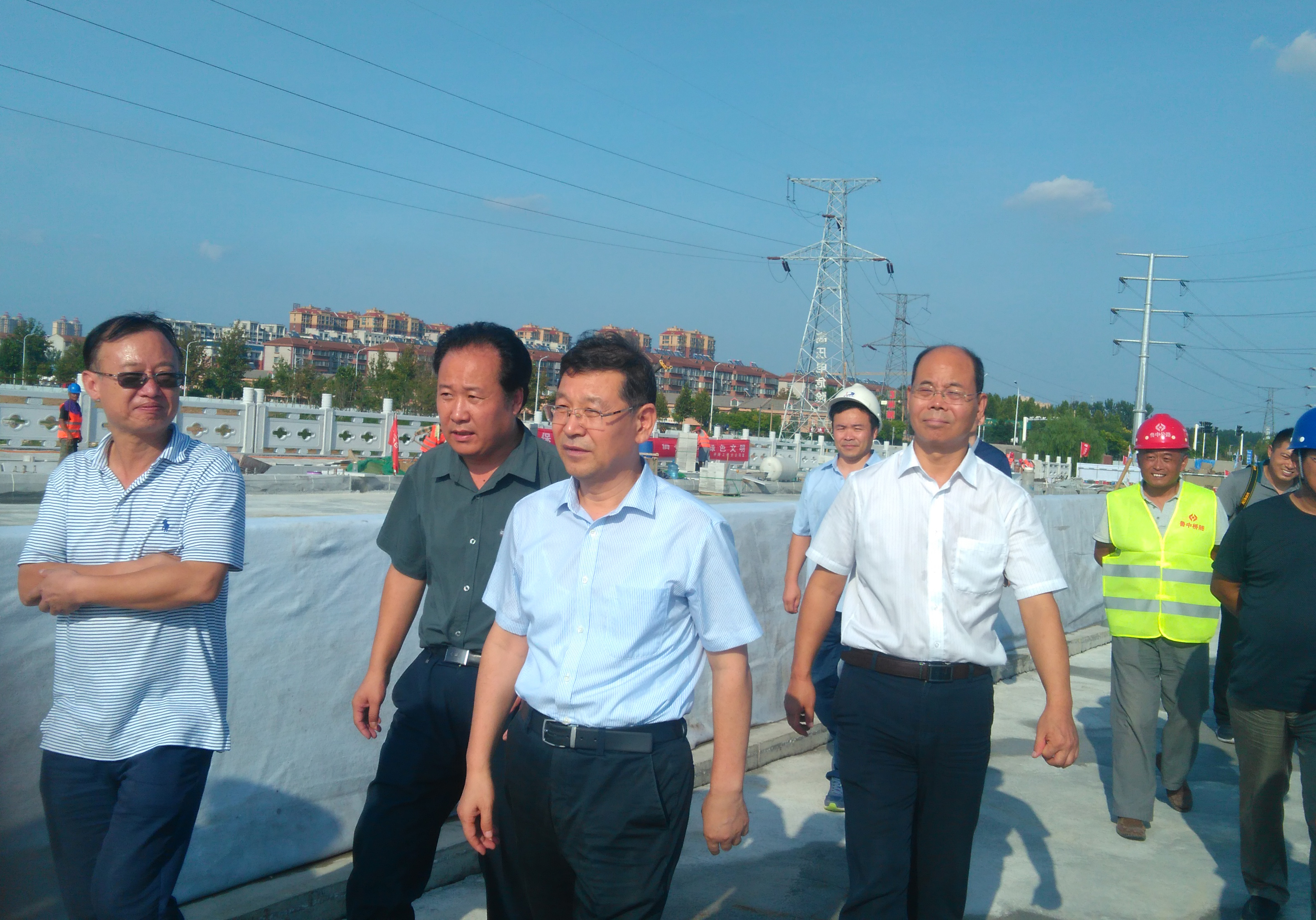 8月24日,在烈日的炙烤下,氣勢(shì)恢宏的花崗巖護(hù)欄和平整潔凈的混凝土橋面折射出耀眼的光芒。下午16:15時(shí),淄博市委常委、市委書(shū)記周連華一行在淄博市住房和城鄉(xiāng)建設(shè)局等相關(guān)領(lǐng)導(dǎo)的陪同下,來(lái)到由我公司承建的馬南路孝婦河橋項(xiàng)目施工現(xiàn)場(chǎng)視察工作。