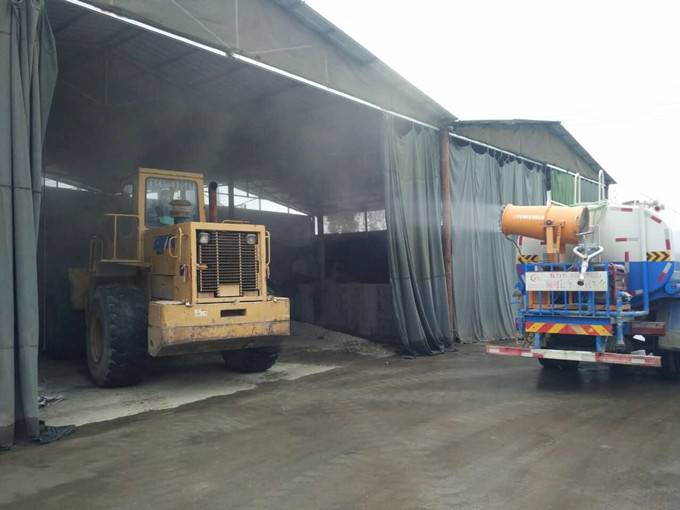 裝載機鏟廢料時,防止環(huán)境污染,霧炮進行噴淋