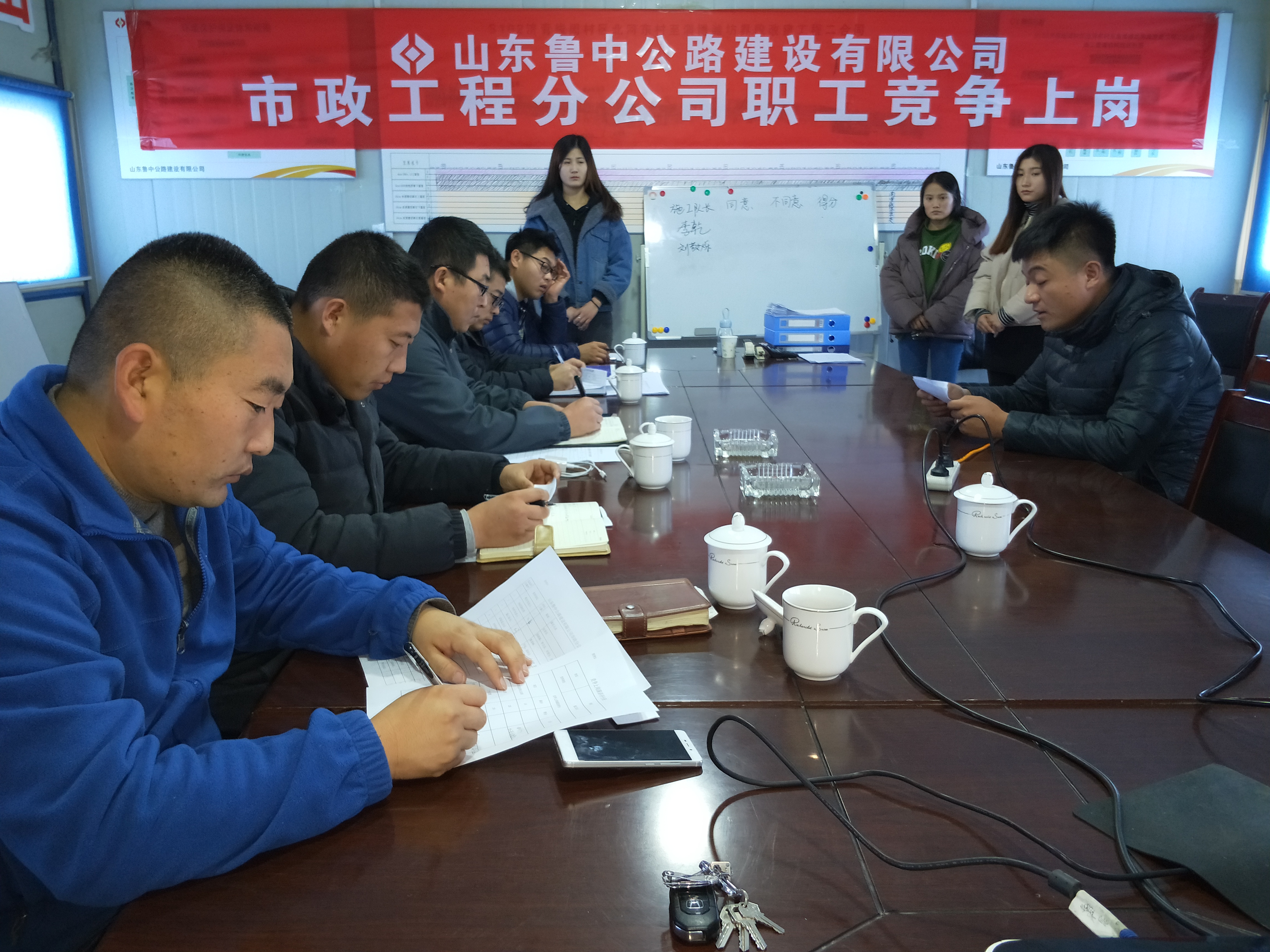 2017年12月23日開(kāi)始,魯中市政工程分公司采取多種形式組織競(jìng)爭(zhēng)上崗工作。此次競(jìng)崗工作市政分公司本著公平、公正、公開(kāi)的原則開(kāi)展競(jìng)崗工作,為各個(gè)崗位選拔優(yōu)秀人才。