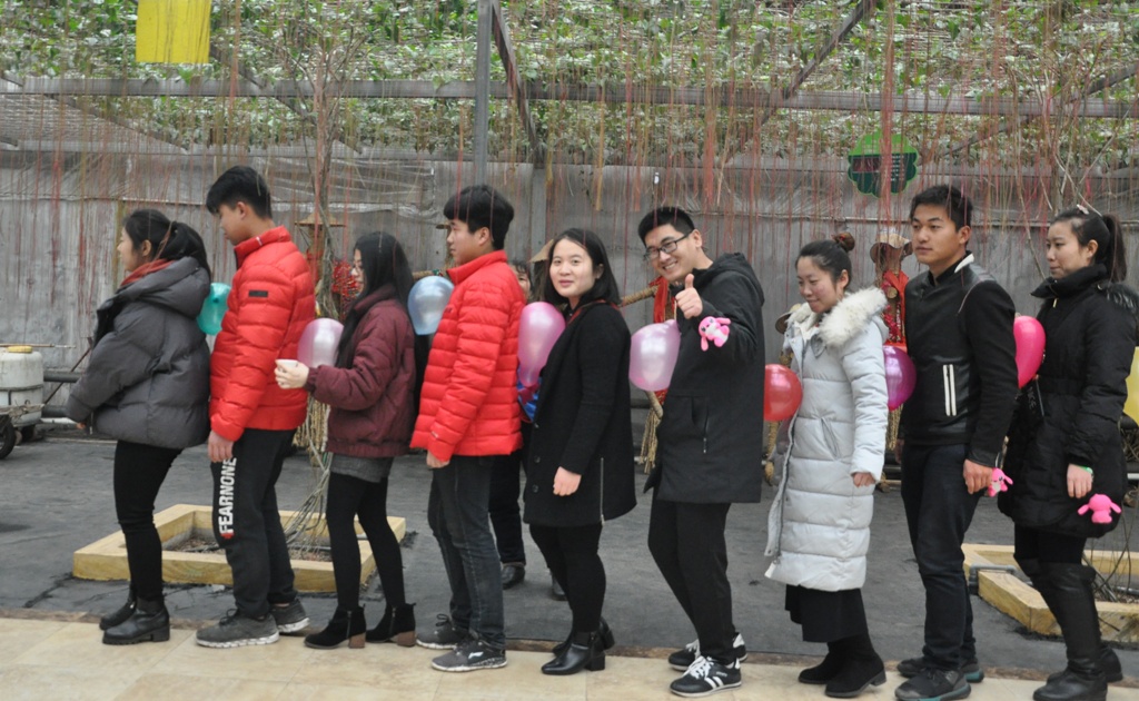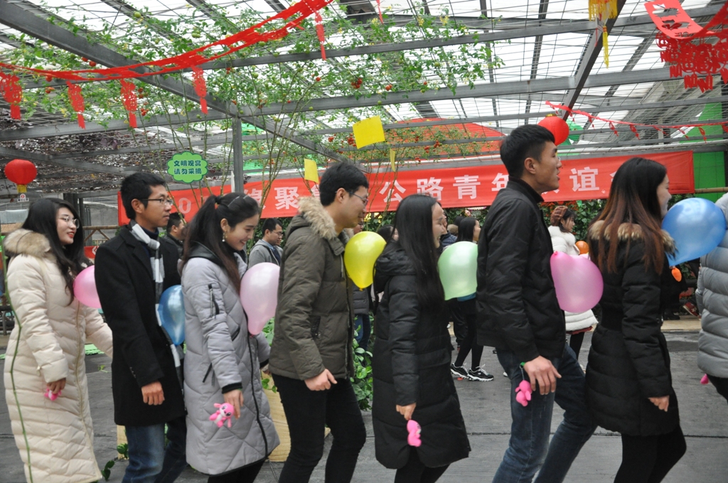 參加活動(dòng)的青年男女紛紛走入會(huì)場(chǎng)。