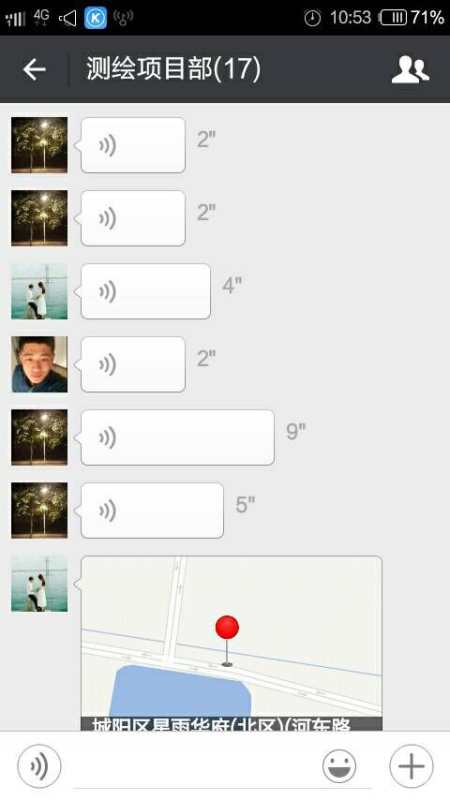 在工作當中,我們的同事經常根據具體情況想辦法出主意,利用平時溝通娛樂的工具解決工作中的實際困難,像大家都非常熟悉的微信,我們微信上面共享位置,我們利用導航地圖探討線路的走向,每當聽到幾個人激烈的討論線路的走向,坐標的位置等問題,我都能體會到大家對工作認真負責的態(tài)度。我堅信只要我們心往一處想,勁往一處使,不怕困難、不斷總結,不斷付出我們的智慧和汗水,我們就一定能夠順利完成所有的測繪項目,我們測繪項目部的未來也一定會是光明和燦爛的!