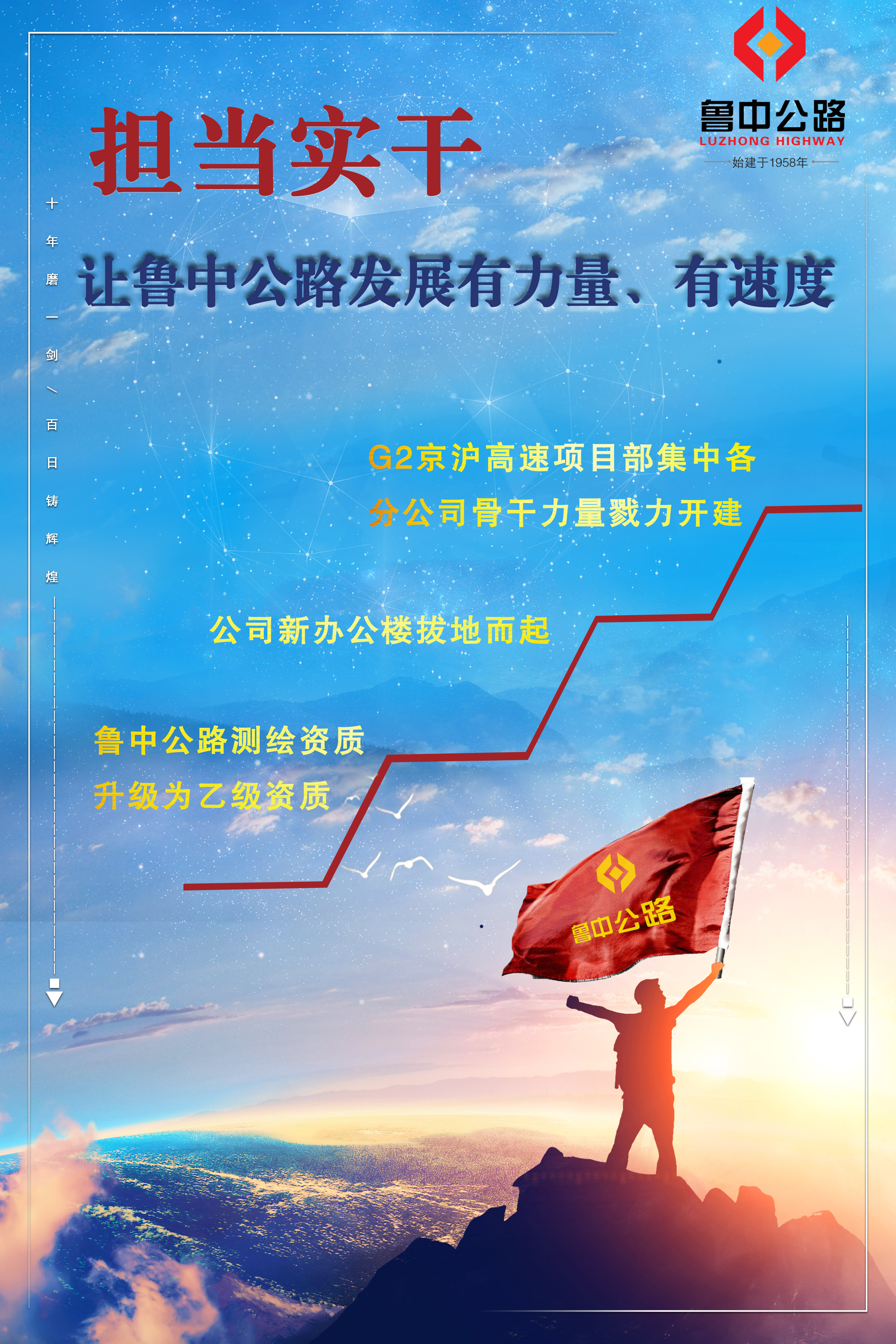 邁著矯健的步伐,我們迎來(lái)了祖國(guó)的傳統(tǒng)節(jié)日端午,同時(shí)也意味著本年度的工作任務(wù)已完成過(guò)半,這半年對(duì)魯中公路來(lái)說(shuō)是蕩氣回腸的,測(cè)繪資質(zhì)升為乙級(jí)、公司新辦公樓拔地而起、G2京滬高速項(xiàng)目部集中各分公司的骨干力量戮力開(kāi)建等等,都使每個(gè)魯中公路人倍感榮耀。“欲戴王冠,必承其重”、“家之昌盛,吾輩有責(zé)”,公司要發(fā)展,員工就要更有力量、有信仰、有文化,使魯中公路在繼承中發(fā)展,在發(fā)展中繼承,千秋萬(wàn)代,筑通天下。