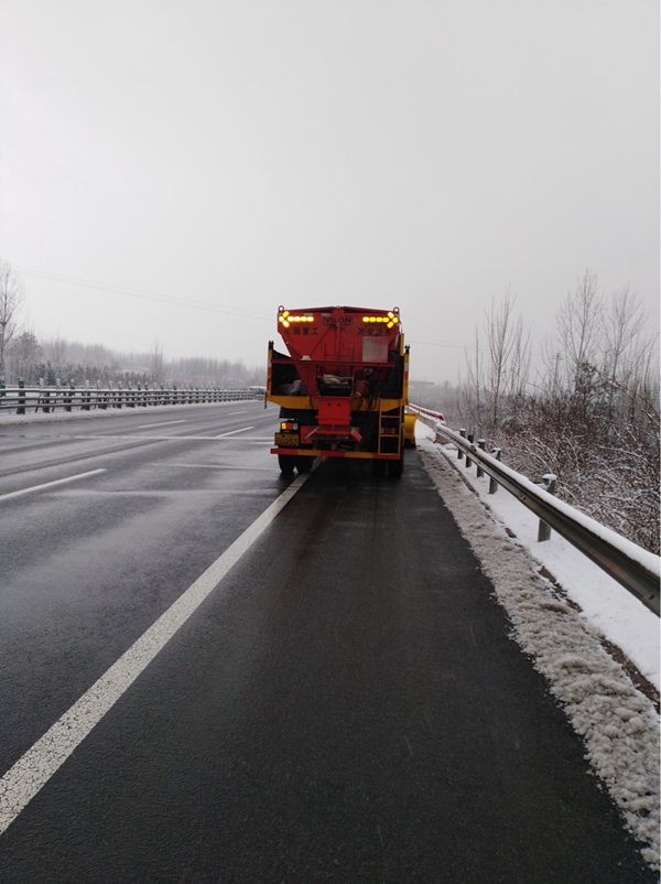 本月初,我部人員在接到養(yǎng)護中心除雪防滑的通知后,第一時間準備就緒,除雪車順利上路撒布融雪劑。作業(yè)期間三輛除雪車從各個路段同時噴灑,確保除雪工作不間斷進行。并每輛除雪車后安排一輛應(yīng)急保障車輛,保障施工安全和施工質(zhì)量。除正常撒布融雪劑外,我部還安排除雪車將道路內(nèi)側(cè)車道、橋梁、背陰路段積雪進行鏟除。歷時施工兩日,除雪應(yīng)急工作已順利完成,道路積雪融化,車輛正常行駛。