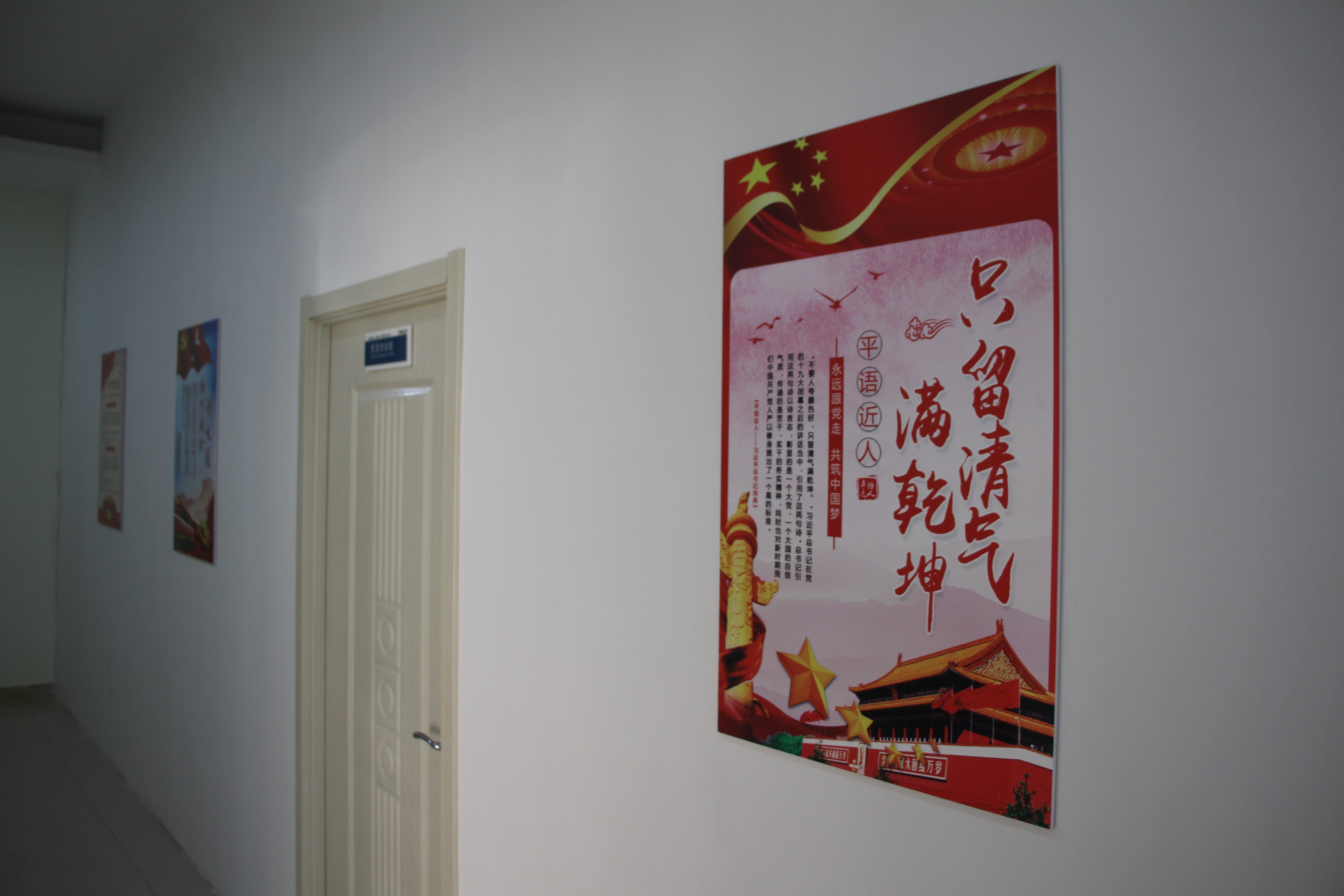 黨員活動室內(nèi)的大幅黨建宣傳圖。