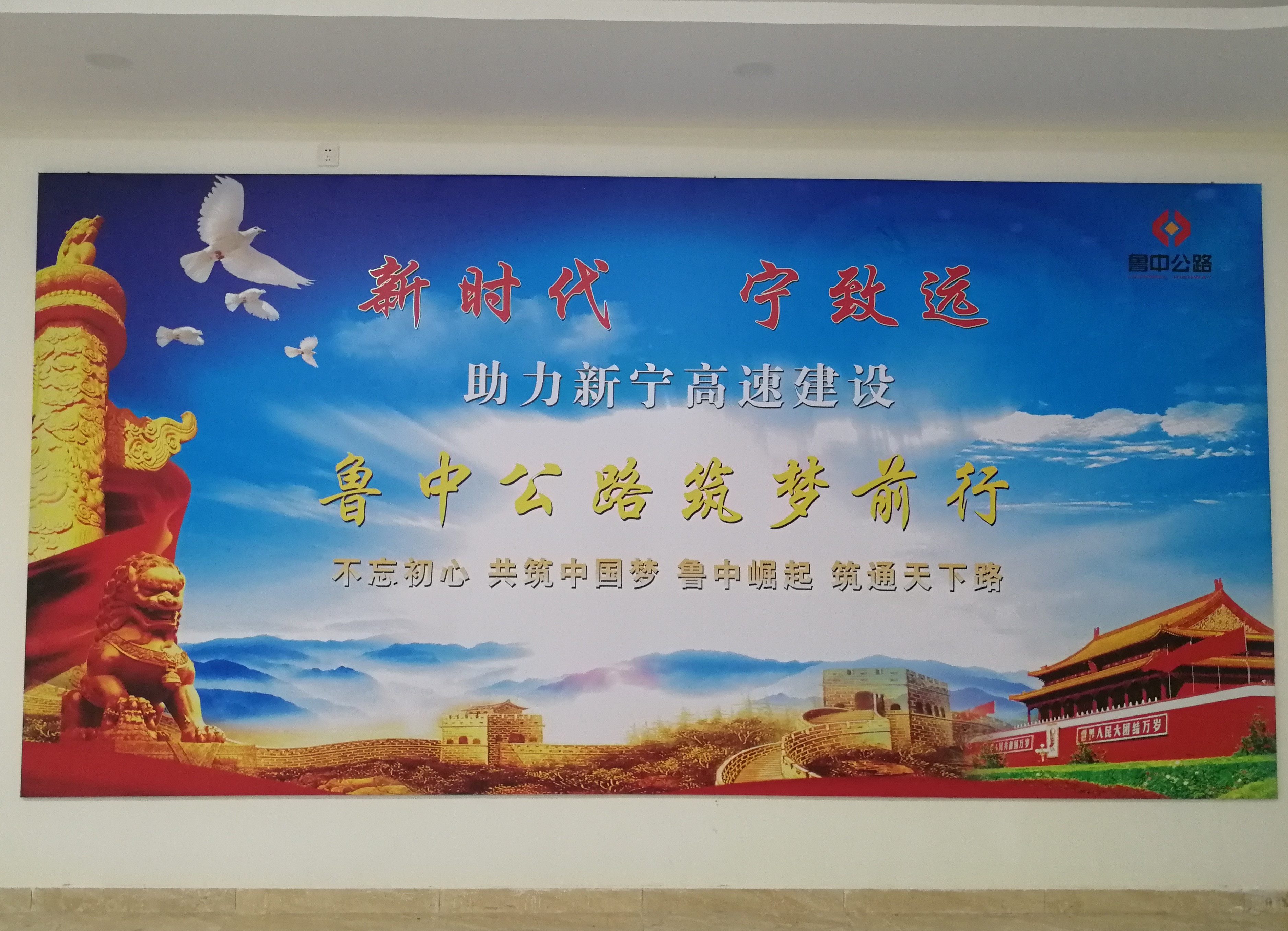 推開項(xiàng)目部大門,進(jìn)入一樓大廳內(nèi),首先映入眼簾的是魯中公路標(biāo)志及文化標(biāo)語。