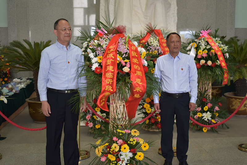 在紀(jì)念館,大家循著腳步,首先來(lái)到主館,主館坐落在綠色草坪的基臺(tái)上,象征著周總理無(wú)私奉獻(xiàn),一生為人民著想,扎根在祖國(guó)的土地上。大廳內(nèi)樹(shù)立一座漢白玉像,目視遠(yuǎn)方,正氣浩然。一行人為總理獻(xiàn)花挽聯(lián),莊嚴(yán)宣誓。