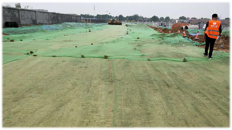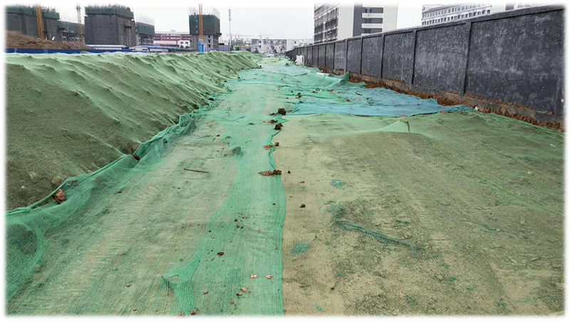魯中公路經(jīng)開區(qū)道路工程工地防揚(yáng)塵非施工區(qū)域全部采用綠網(wǎng)覆蓋