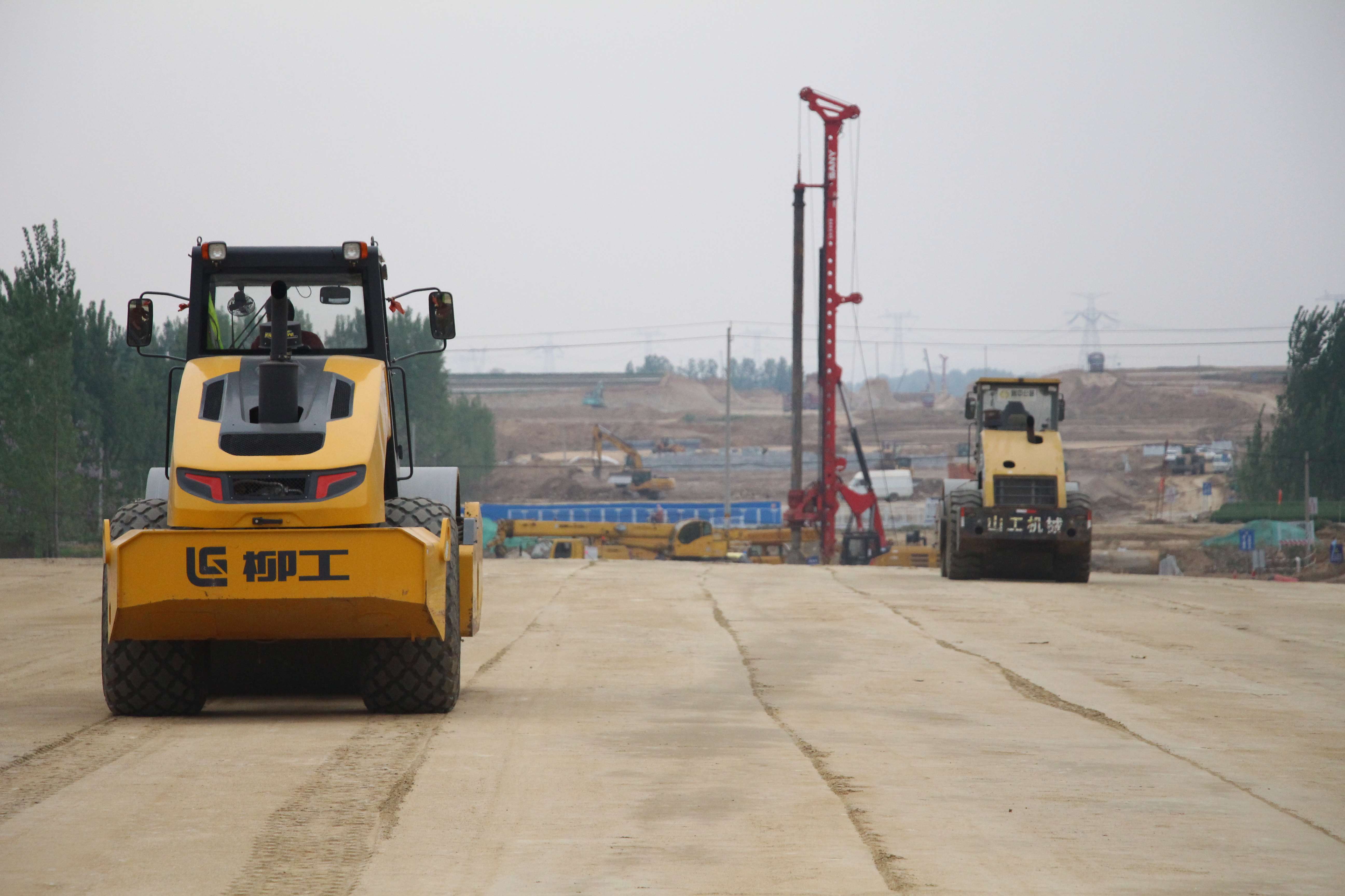 通過這一系列的有效措施,各線工作逐步步入正軌。施工便道上,運輸土石方的近百輛運輸車絡(luò)繹不絕,來回穿梭、各類大型施工機械設(shè)備,齊聲轟鳴,路基填筑碾壓、樁基鉆孔灌注、臺背回填壓實、系梁澆筑混凝土......各項工序有條不紊,快速推進。