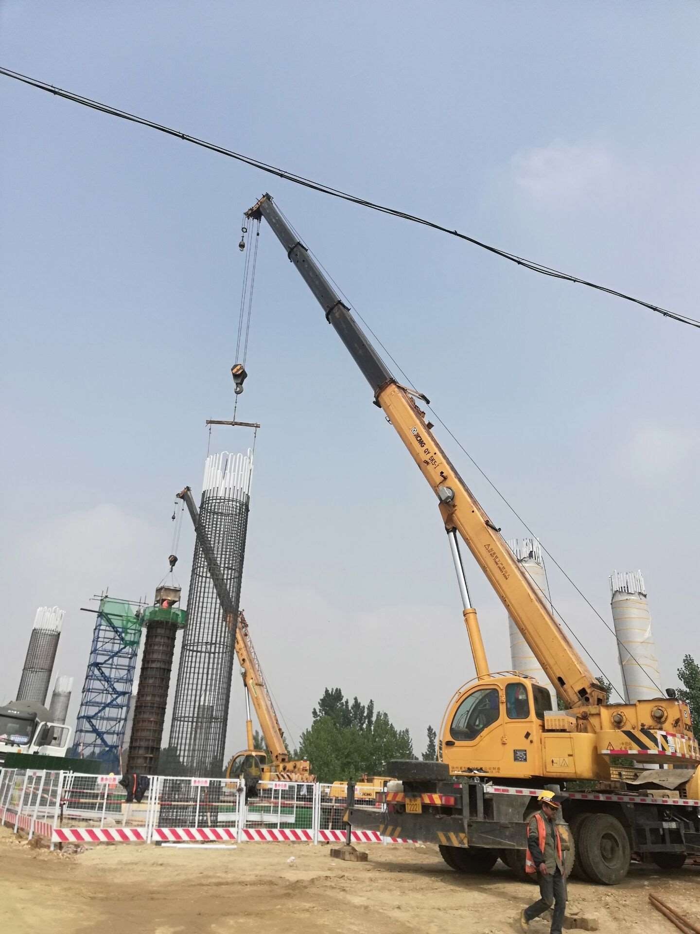 興隆莊特大橋施工現(xiàn)場,現(xiàn)場負責(zé)人朱恒正在指揮機械、工人進行墩柱及系梁澆筑施工。