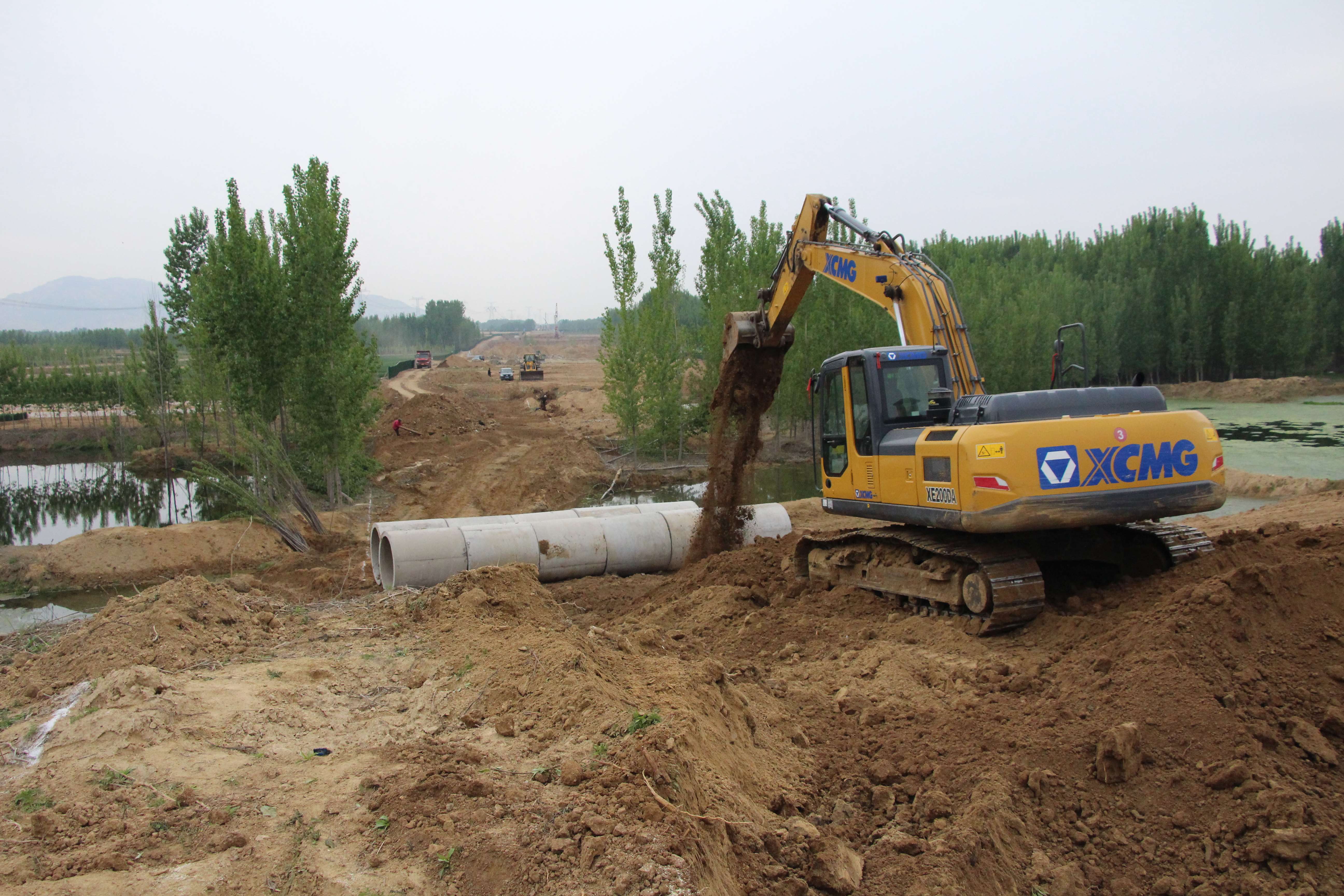 高鐵西側(cè)k57+500附近,現(xiàn)場負責(zé)人楊新剛正和施工隊一道進行便道施工。
