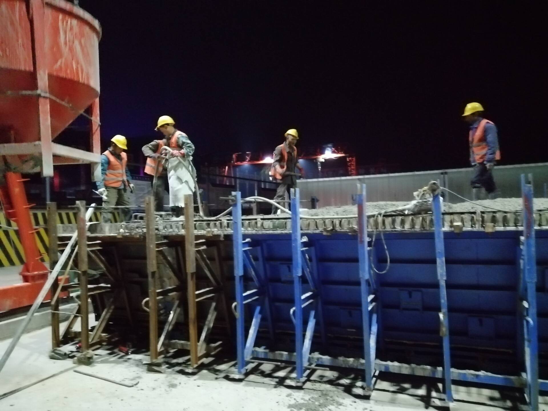 為了確保“春季百日大干”計劃產(chǎn)值如期、超額完成,項目部合理安排工序,進行交叉作業(yè),充分利用時間,根據(jù)工序安排,夜間施工一般進行的是鋼筋綁扎和混凝土澆筑。在忙碌一天后,夜間的施工隊現(xiàn)場管理人員要求極高,無論從質(zhì)量方面還是安全方面,都要付出更多的精力。
