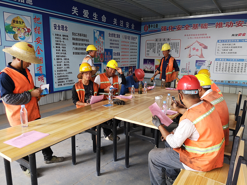 在綜合場(chǎng)站設(shè)立安全咨詢臺(tái)分發(fā)“安全生產(chǎn)明白卡”及“安全指導(dǎo)手冊(cè)”,宣傳安全生產(chǎn)知識(shí)及法律法規(guī),面對(duì)面解決施工人員關(guān)心的安全生產(chǎn)問(wèn)題,切實(shí)做好安全咨詢活動(dòng)及人文關(guān)懷。