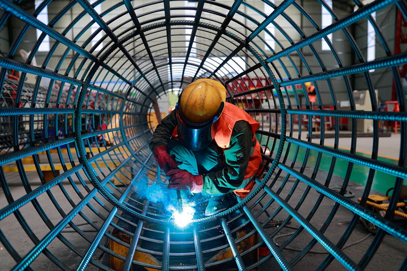 安全帽、防護面罩、防塵口罩、全套帆布質(zhì)地的工作服、長及手臂的皮質(zhì)手套——這些都是進行焊接作業(yè)時的標配,到了夏天,幾分鐘衣服就被汗水浸透,雖然高溫難耐,但鋼筋加工廠的工人們明白活不能耽誤,責任與堅守是他們堅定的承諾。