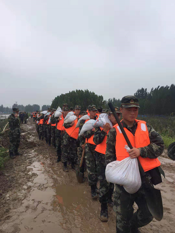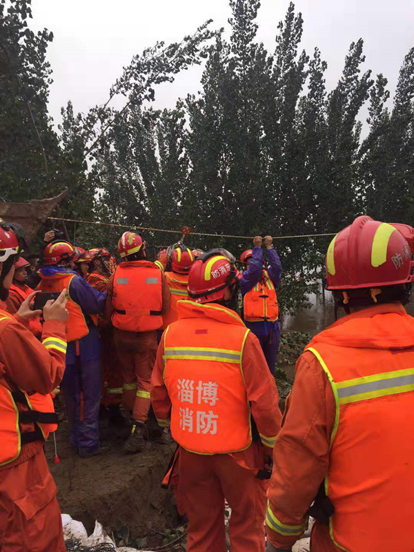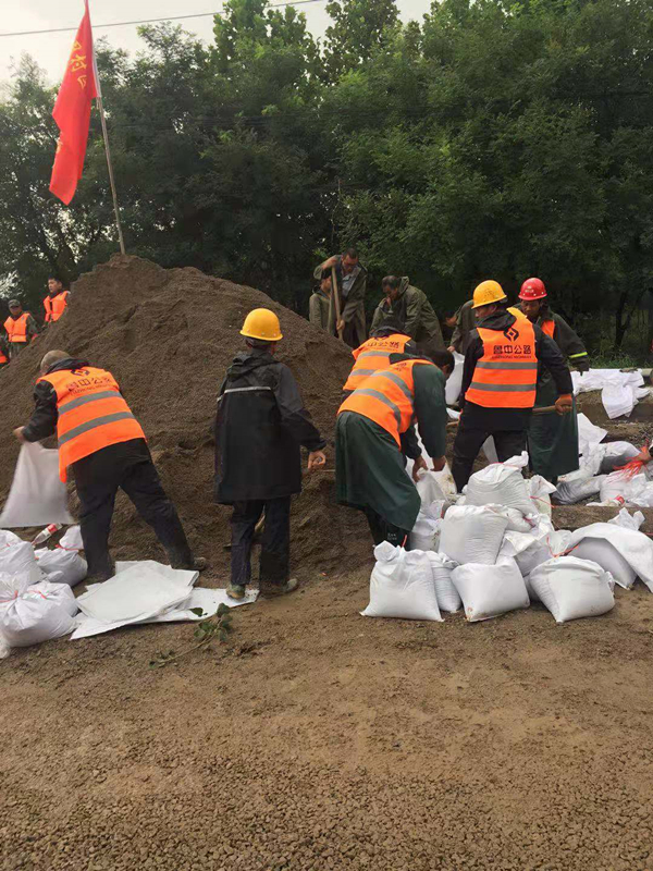 受“利奇馬”影響,8月10號(hào)到12號(hào)淄博市普降暴雨,孝婦河水位暴漲,袁家橋村段發(fā)生兩處50米、10米的決口,附近村莊被淹,情況危急。在項(xiàng)目自身受到臺(tái)風(fēng)與洪水影響的情況下,魯中公路經(jīng)開區(qū)分公司自8月11日17時(shí)開始,分批次投入搶險(xiǎn)人員34人,搶險(xiǎn)車輛7臺(tái),冒雨投入到抗洪救災(zāi)搶險(xiǎn)工作中。8月12日4時(shí),魯中公路柳園路孝婦河橋項(xiàng)目部又組織11人救援小組與一臺(tái)裝載機(jī)雨中再次奔赴搶險(xiǎn)救援現(xiàn)場。在省、市、開發(fā)區(qū)、及市交通運(yùn)輸局等領(lǐng)導(dǎo)的督導(dǎo)下,水利專家的指導(dǎo)下,魯中公路與500多名武警官兵、公安干警、消防戰(zhàn)士,及經(jīng)開區(qū)管委會(huì)、經(jīng)開區(qū)各施工單位,當(dāng)?shù)孛癖姷?000多人經(jīng)過兩天近50個(gè)小時(shí)的日夜奮戰(zhàn),8月13日下午16時(shí),袁家橋段缺口成功堵住。