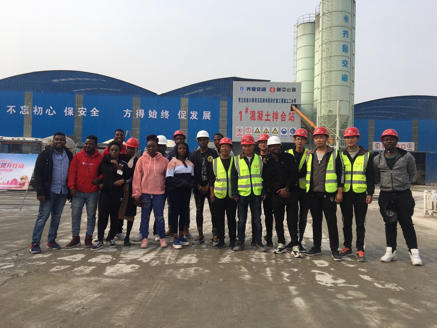 參觀結束,同學們依依不舍踏上歸程。臨行與預制場施工人員合影留念
