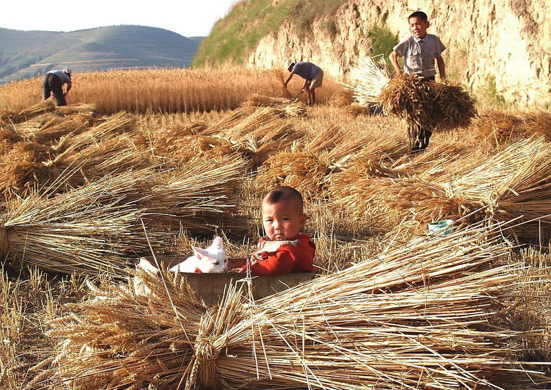 看著一簍簍的麥子鐮刀飛舞了汗水飛舞了