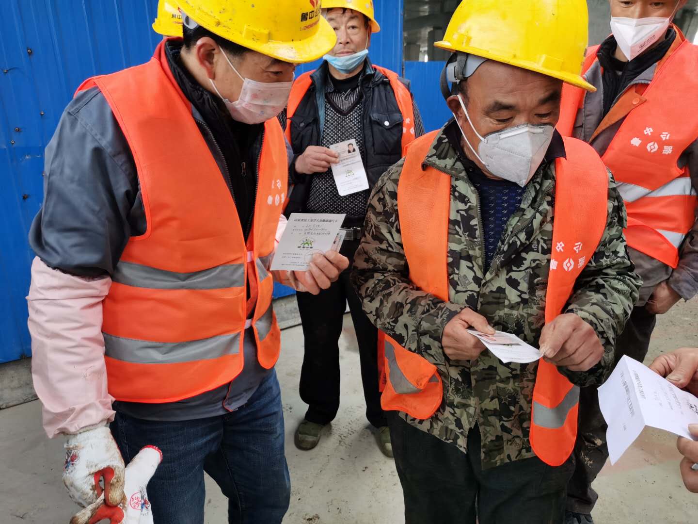 人員進場按要求檢查健康證、測體溫、檢查生活區(qū)消毒情