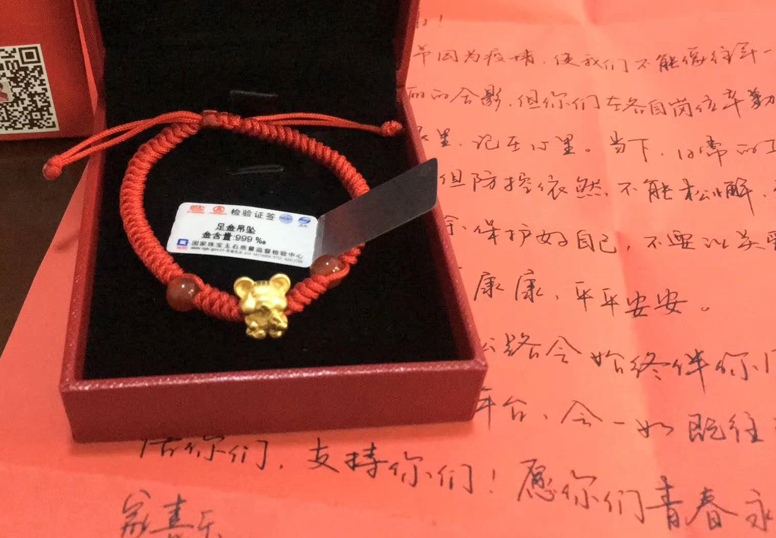 今年公司為女員工們準備的節(jié)日禮物是一串寓意著吉祥平安的足金鼠轉運珠手鏈,在這個特殊日子中,寄托了公司對每位女員工的祝福:“數(鼠)這些美麗的姑娘們最健康!最幸福!”