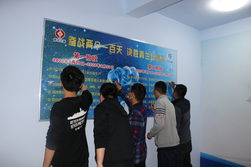 在“奮戰(zhàn)兩個(gè)一百天,決勝青蘭攻堅(jiān)戰(zhàn)“的決心書(shū)上簽下自己的名字。