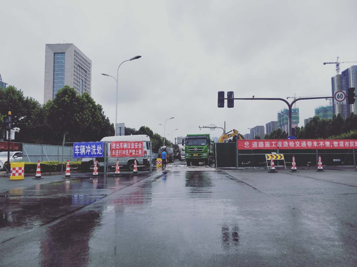 工地進(jìn)出車輛沖洗路面防揚(yáng)塵作業(yè)