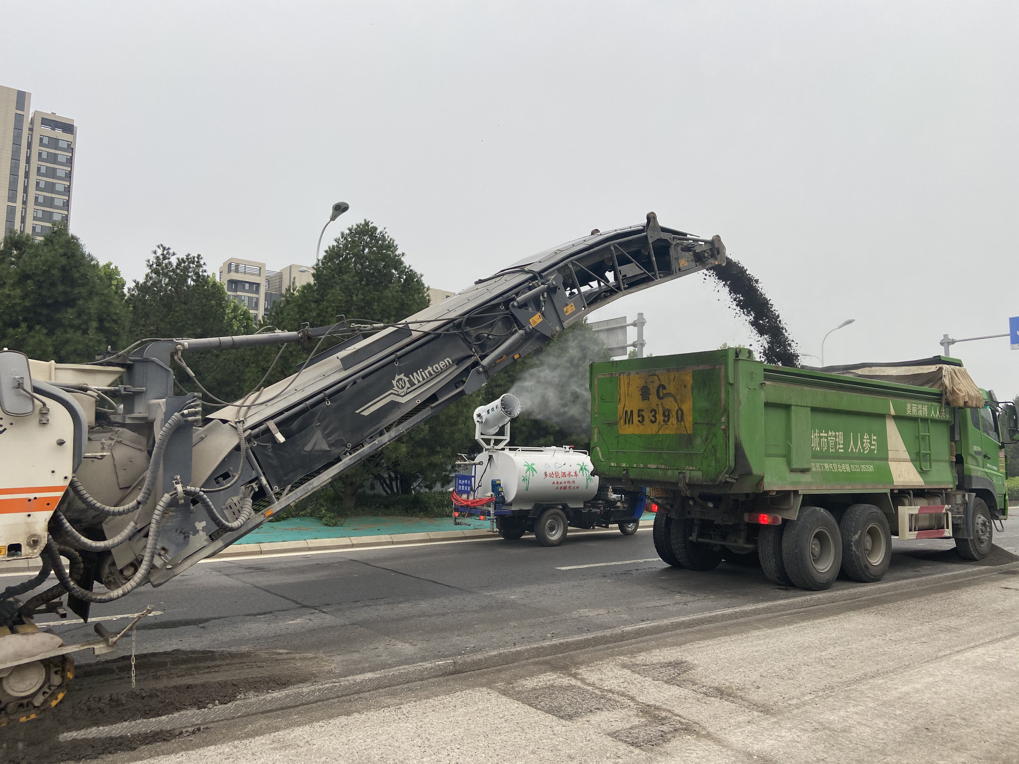 聯(lián)通路老路面防揚(yáng)塵濕法銑刨作業(yè)