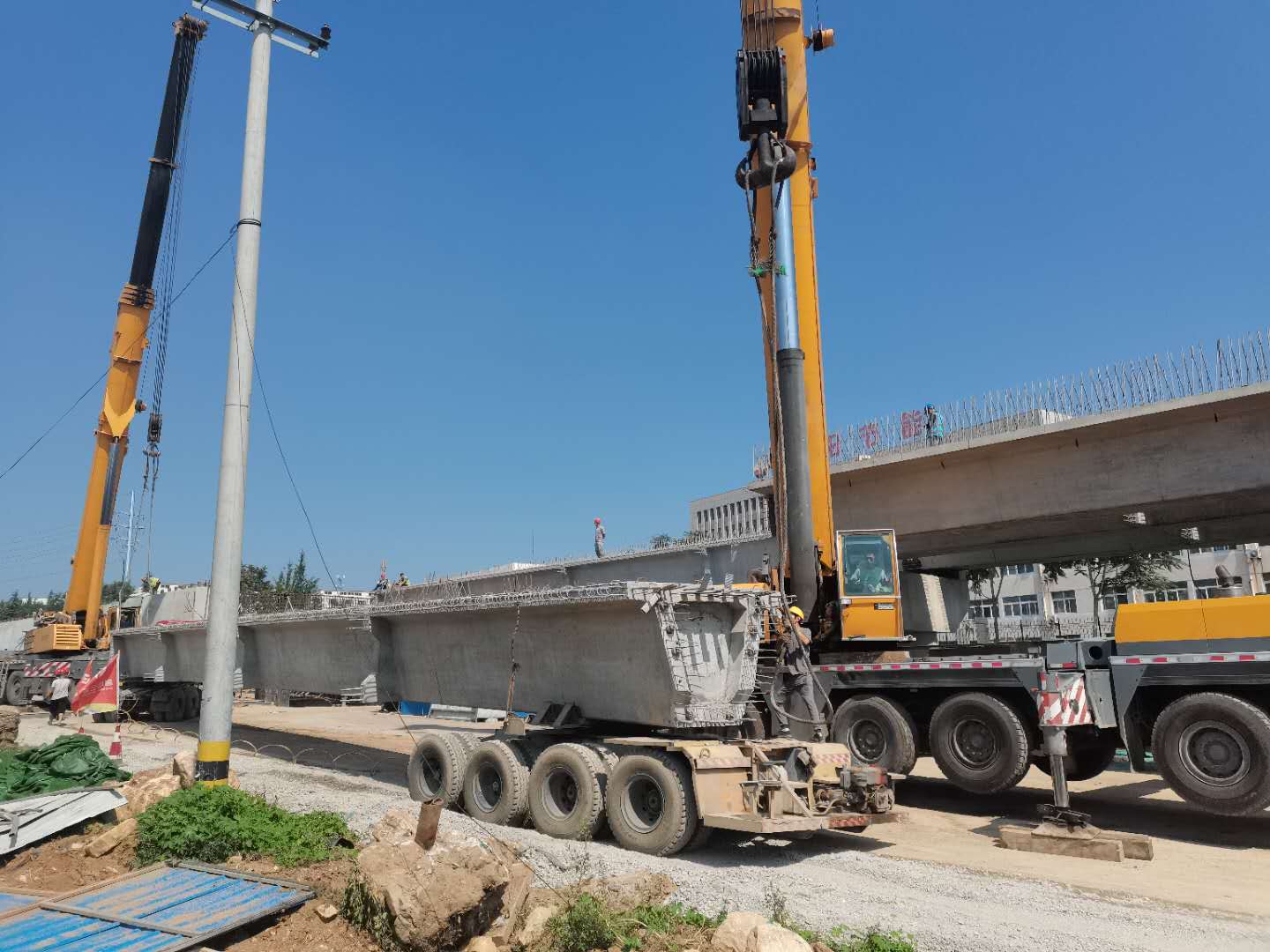 G341膠海線南崔路立交橋30m箱梁吊裝完成