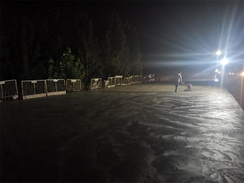 在橋面鋪裝施工過程中,新寧項目部精心組織、超前謀劃,從原材料的選用到鋪裝前橋面面板清理、鋼筋網(wǎng)片鋪設、混凝土澆筑平整等,每道工序嚴格把關(guān),相關(guān)技術(shù)人員全程指導、監(jiān)督、監(jiān)測,對混凝土塌落度及橋面鋪裝層高程、厚度、橫坡度、平整度等各項技術(shù)指標進行了嚴格控制,從而保證橋面鋪裝質(zhì)量達到優(yōu)良標準。