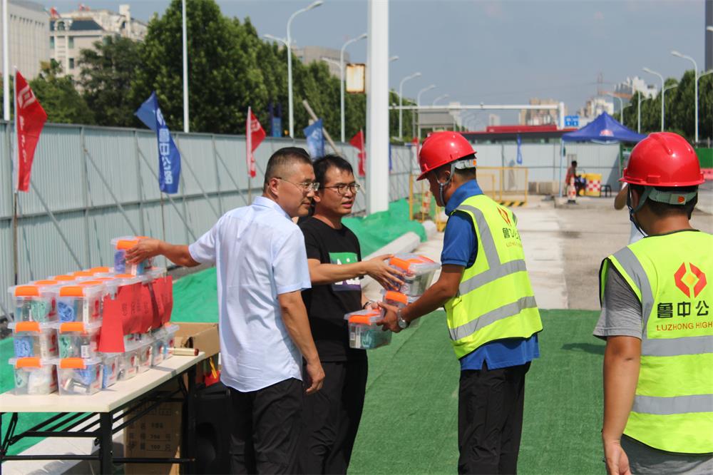 連日來,持續(xù)高溫酷暑天氣,在聯(lián)通路工地上感覺是上烤下烙,魯中公路一線職工不懼酷暑依然堅守崗位,為淄博市政建設(shè)和交通提升改造默默付出辛勞與汗水。魯中公司總經(jīng)理王克輝、第三工程公司經(jīng)理徐良軍、李剛也在施工現(xiàn)場關(guān)注著施工進度與生產(chǎn)安全,特別關(guān)心著高溫下施工人員的健康問題。除了做好進場人員的體溫監(jiān)測登記,在現(xiàn)場臨時休息亭準(zhǔn)備了各種防暑降溫的藥物、飲料、小扇子等。看到工程一線各施工單位不辭辛勞為工程建設(shè)無私奉獻,市城建重點工程指揮部市政處史清峰處長、市政處科長王鵬、辦公室主任秦靜一行攜帶慰問品來到工地給大家“送清涼”來了。要求各項目建設(shè)單位,保證安全生產(chǎn),又要注意身體健康,要把服務(wù)和保障職工健康作為工作重點,進一步推動落實關(guān)懷職工政策,幫助職工安全度夏、清涼度夏。