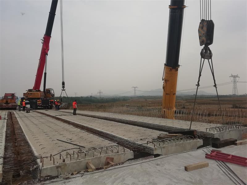 新寧高速項目橋梁數(shù)量多,上部結構基本為梁板吊裝,項目部在橋梁吊裝上做了精心的部署:一、根據現(xiàn)場實地考察,規(guī)劃及選擇合理的全線運梁道路;二、針對橋梁編制梁板吊裝專項方案,組織現(xiàn)場技術人員及吊裝隊伍進行技術、安全交底;三、嚴格控制吊裝設備進場、現(xiàn)場吊裝順序、梁板運輸?shù)仁┕きh(huán)節(jié);四、現(xiàn)場安排專人指揮,安全人員全程跟蹤,確保吊裝安全順利。