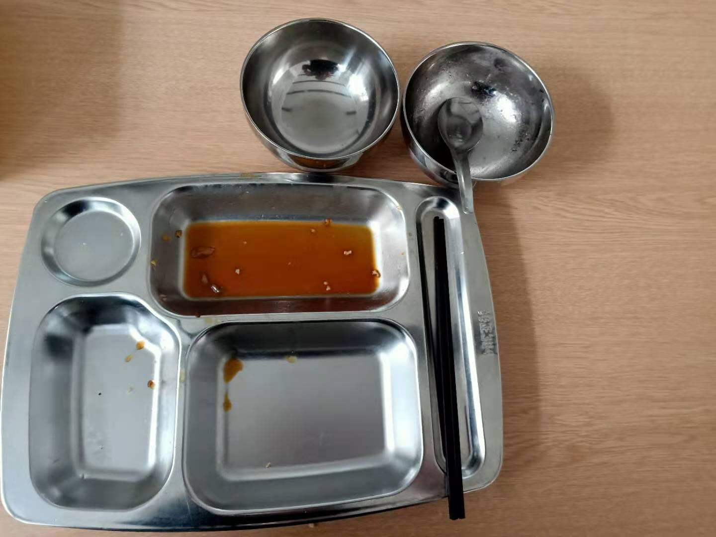 整潔的就餐環(huán)境,嶄新的明廚亮灶,還有熟悉的人,唯一變化的就是現(xiàn)在就餐改為自助餐,自從就餐實(shí)行自助餐以來,每個人的餐盤和碗里最大的變化就是光盤,以前的時候,每個人不論飯量大小,不論男女老少,都一樣的量,有的不夠吃,有的吃不了?,F(xiàn)在好了,按需分配,吃多少盛多少,每個人可以按自己的口味和喜好盛自己中意的飯菜。這樣,既節(jié)約不浪費(fèi),又滿足了每個人的胃口。飯中有湯,還有餐后水果。一切都顯得那么高大上,又都顯得那么自然,每個人吃完都端著空空如也的餐盤放到指定位置,順手把餐桌打掃干凈,把餐椅拖到桌下就位,彰顯著魯中公路人的素質(zhì)!