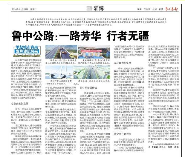 為展示淄博建筑業(yè)優(yōu)秀企業(yè)和風(fēng)采人物,樹立行業(yè)社會(huì)形象,營造激勵(lì)企業(yè)家干事創(chuàng)業(yè)的社會(huì)氛圍,淄博市住房和城鄉(xiāng)建設(shè)保障服務(wù)中心聯(lián)合魯中晨報(bào),推出“擎起城市脊梁 聚焦建筑風(fēng)采”專欄。緊緊圍繞開展高質(zhì)量發(fā)展“樹標(biāo)對(duì)標(biāo)奪標(biāo)”行動(dòng),聚焦建筑行業(yè),宣傳淄博市新時(shí)代建筑業(yè)企業(yè)文化和品牌建設(shè)典型,2020年11月24日專欄第九期特別推介了淄博市優(yōu)秀建筑業(yè)企業(yè)———山東魯中公路建設(shè)有限公司。全文內(nèi)容如下: