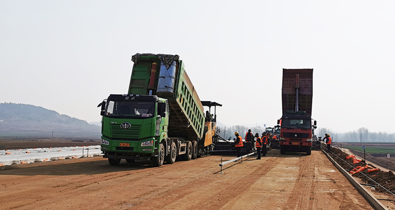 2020.03.19  沉寂了近三個多月的路面基層拌合站開始運轉,一車車水穩(wěn)料運到施工現(xiàn)場,標志著新寧項目路面工程開始展開大面積施工。