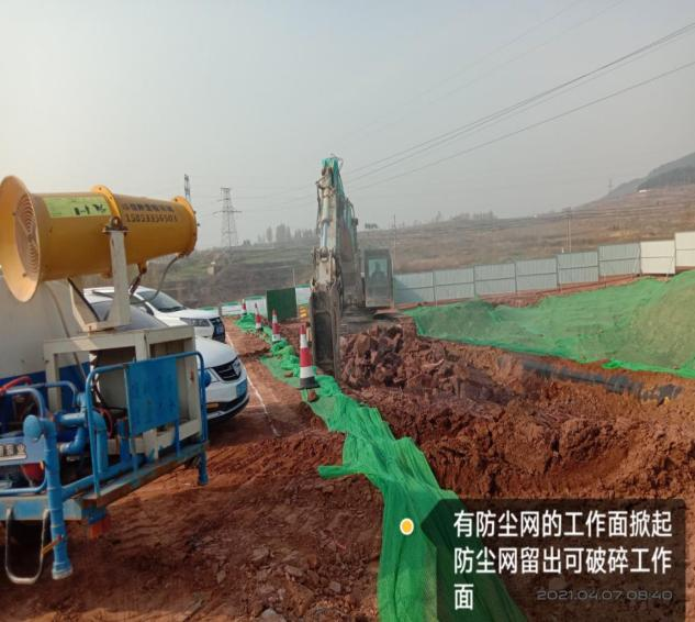 工程進(jìn)展初期,各個(gè)工作面裸土覆蓋成為落實(shí)環(huán)保工作的一項(xiàng)重要措施。“用量大”、“易損壞”成了防塵網(wǎng)的兩大特點(diǎn),針對(duì)此特點(diǎn),落實(shí)節(jié)能增效的理念,防塵網(wǎng)必須做好循環(huán)利用、將損壞程度降低到最小化。機(jī)械在進(jìn)入已經(jīng)覆蓋防塵網(wǎng)的工作面工作時(shí),提前將防塵網(wǎng)卷起集中放到一側(cè);工作面上不再使用的閑置防塵網(wǎng)集中收集、集中存放,以備其他工作面使用,做到循環(huán)利用;嚴(yán)令禁止各種機(jī)械、車(chē)輛碾壓蓋有防塵網(wǎng)的工作面,降低防塵網(wǎng)的損壞,從而降低成本。