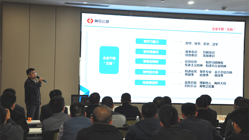 在課程開講之前,公司總經(jīng)理呂志勇首先為“魯中公路學(xué)堂”開課致辭。呂總在致辭中講到:當(dāng)前我們所面臨的市場環(huán)境和行業(yè)形勢發(fā)生了深刻而巨大的變化,只有全面、客觀的認(rèn)識當(dāng)前的市場行業(yè)形勢,對市場發(fā)展有準(zhǔn)確的認(rèn)知與判斷,對未來懷有危機(jī)感,才能有針對性的做出應(yīng)對措施,立足本行業(yè)。而如何做到適應(yīng)行業(yè)變化,則取決于各級領(lǐng)導(dǎo)干部的素質(zhì)和企業(yè)核心競爭力。今天在場的各位都是魯中公路當(dāng)前的骨干員工和重要干部,也是未來即將擔(dān)當(dāng)大任的干部。作為企業(yè)干部必須要做到“五有”:有學(xué)習(xí)能力、有市場意識、有敬業(yè)精神、有專業(yè)水準(zhǔn)、有思想境界。要在今后的工作中,不斷提升學(xué)習(xí)能力,樹立市場意識,培養(yǎng)敬業(yè)精神,強(qiáng)化專業(yè)水準(zhǔn),提高思想境界,增強(qiáng)綜合素質(zhì),持續(xù)打造魯中公路的核心競爭力,共同促進(jìn)公司更好發(fā)展,為社會(huì)做出更大貢獻(xiàn),為員工謀取更多福利。
