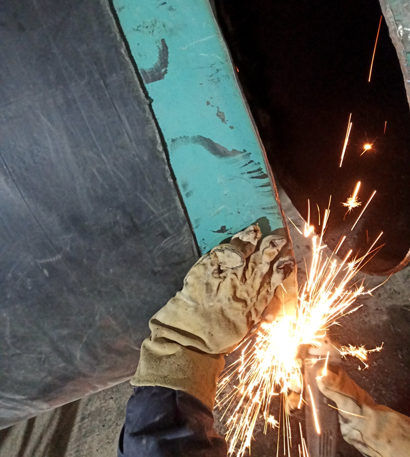 對(duì)口安裝前,采用角磨機(jī)對(duì)坡口打磨
